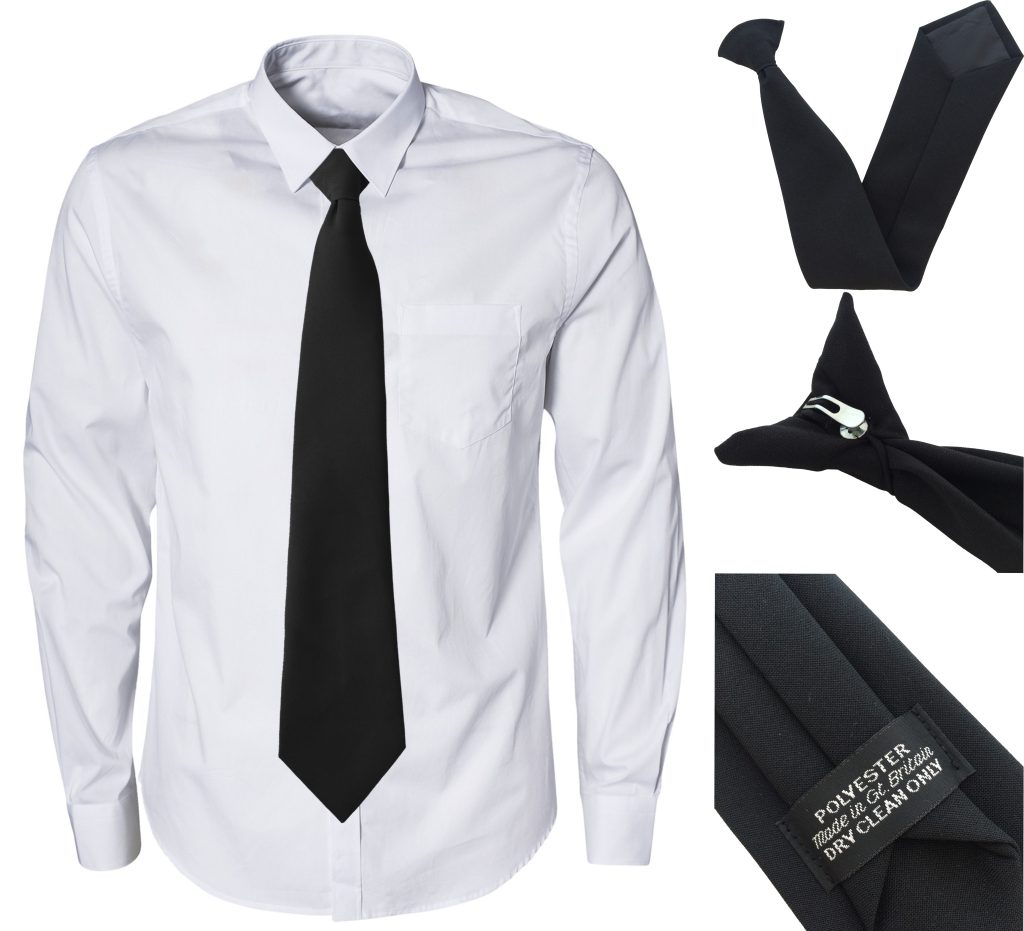 We do also produce Ties and Ladies Clip On Cravats in the same fabric for those who prefer a traditionally time knot and who are not in a situation of risk. As they are all the same fabric and colours, they are ideal for company uniform.