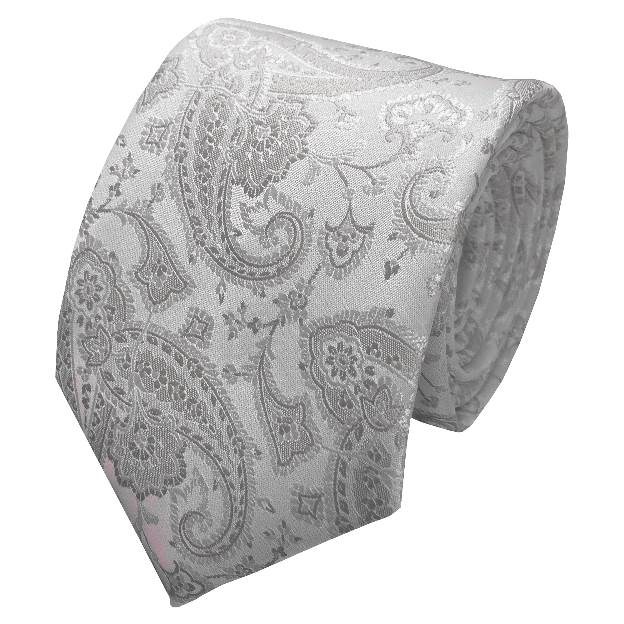 Mens Paisley Woven Neck Tie (Cream and Silver)