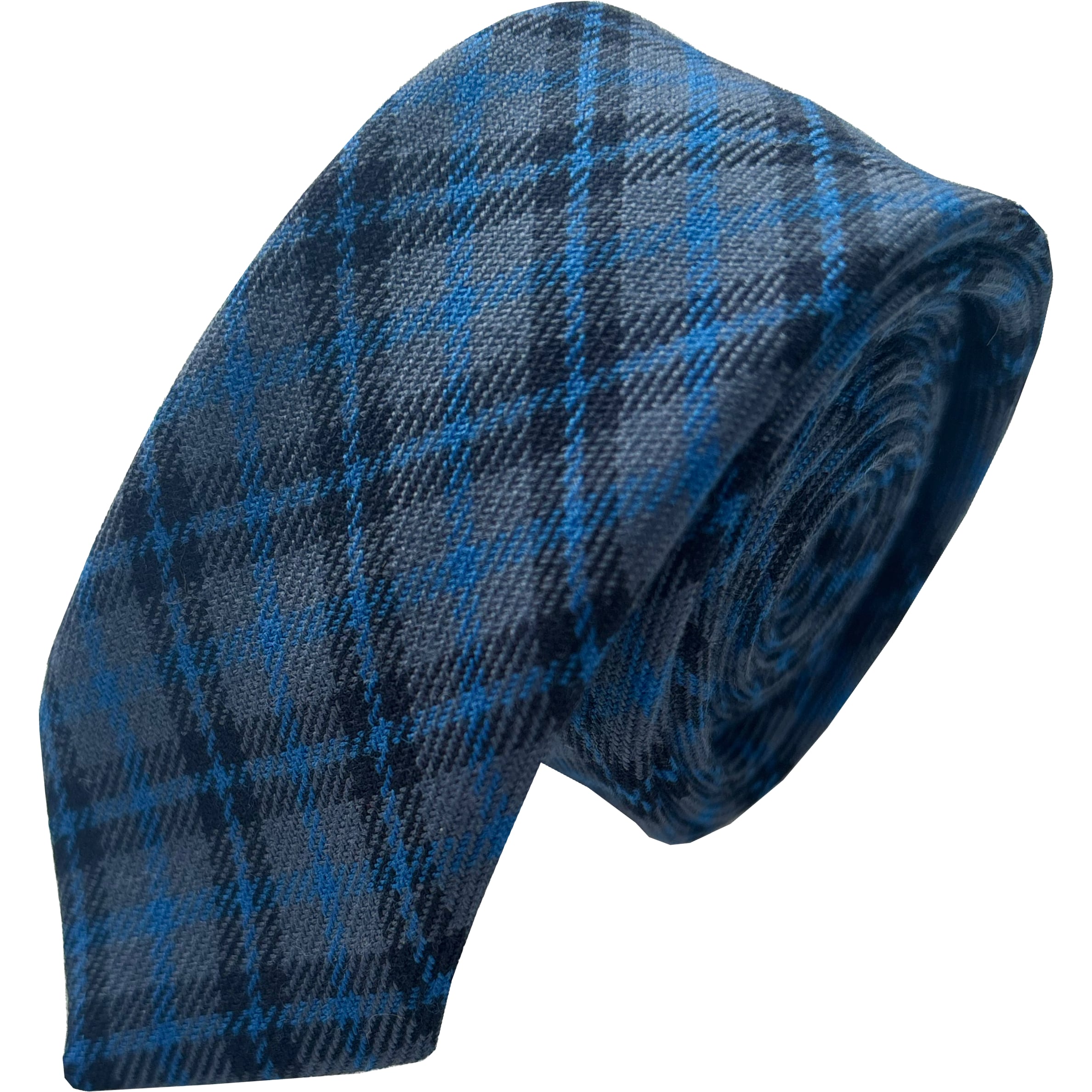 Bedford Blue Tartan Skinny Mens Tie. Made from high quality woven Polyviscose fabric. Direct from UK manufacturer. The Tie measures 57 inches long (untied) and is just 2 inches wide.