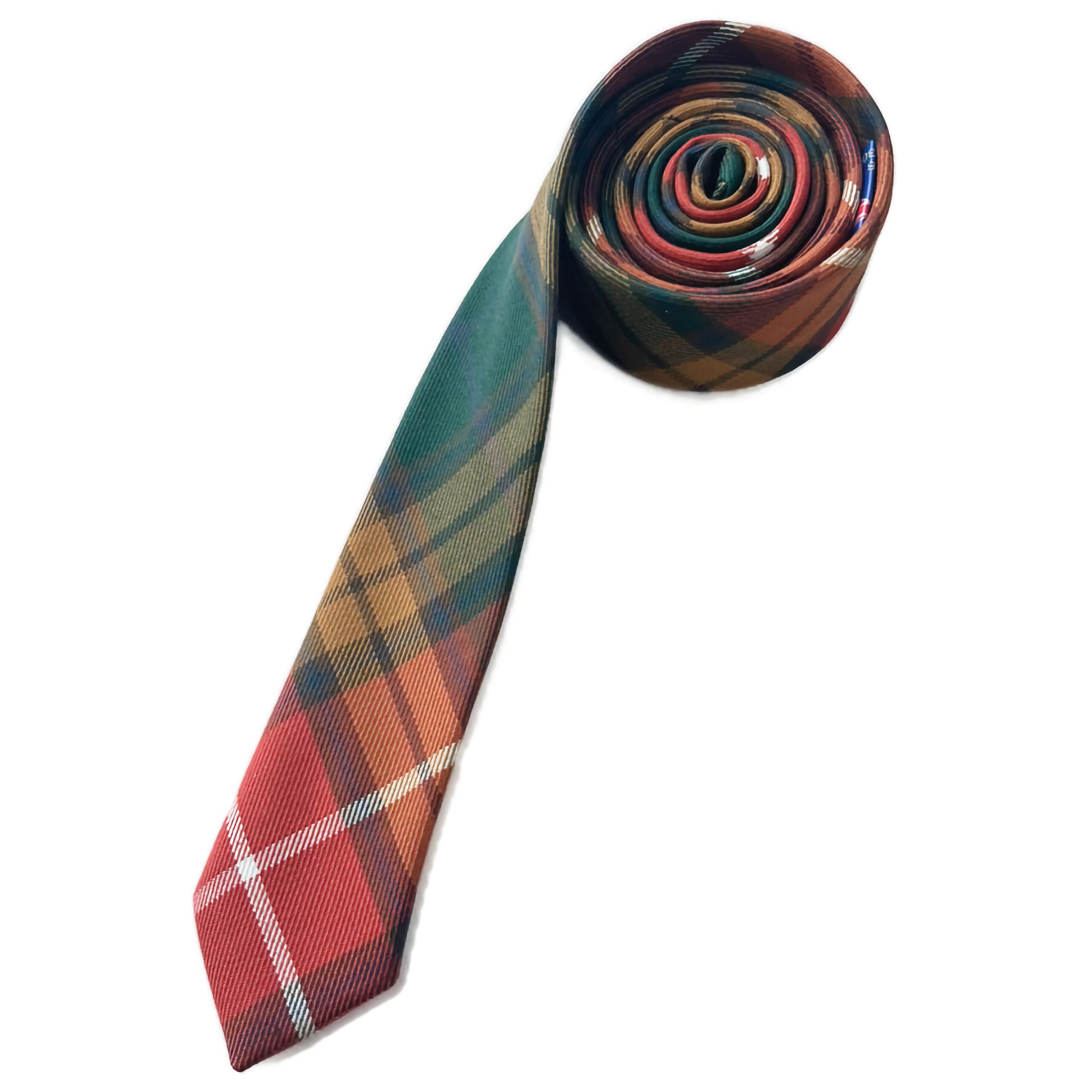 Buchanan Tartan Skinny Mens Tie. Made from high quality woven Polyviscose fabric. Direct from UK manufacturer. The Tie measures 57 inches long (untied) and is just 2 inches wide.