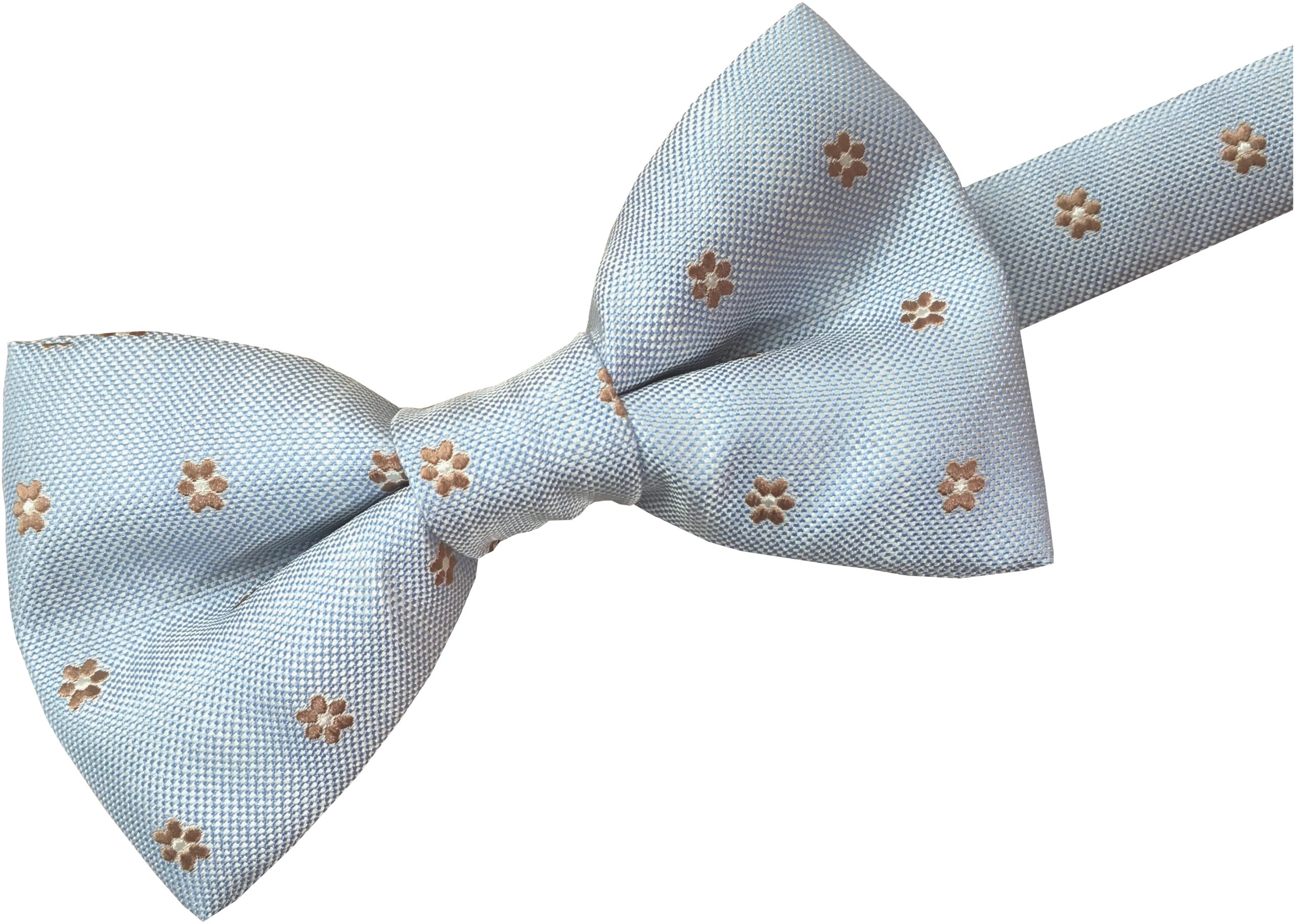 Baby Blue with Small Bronze Flowers Floral Design Ready Tied Bow Tie made in the UK from Jacquard woven Silk fabric. Direct from UK manufacturer. The Bow measures 4.5 inches wide, and the Bow Wings are 2.5 inches tall. The adjustable neckband is suitable for collars up to 19 inches.
