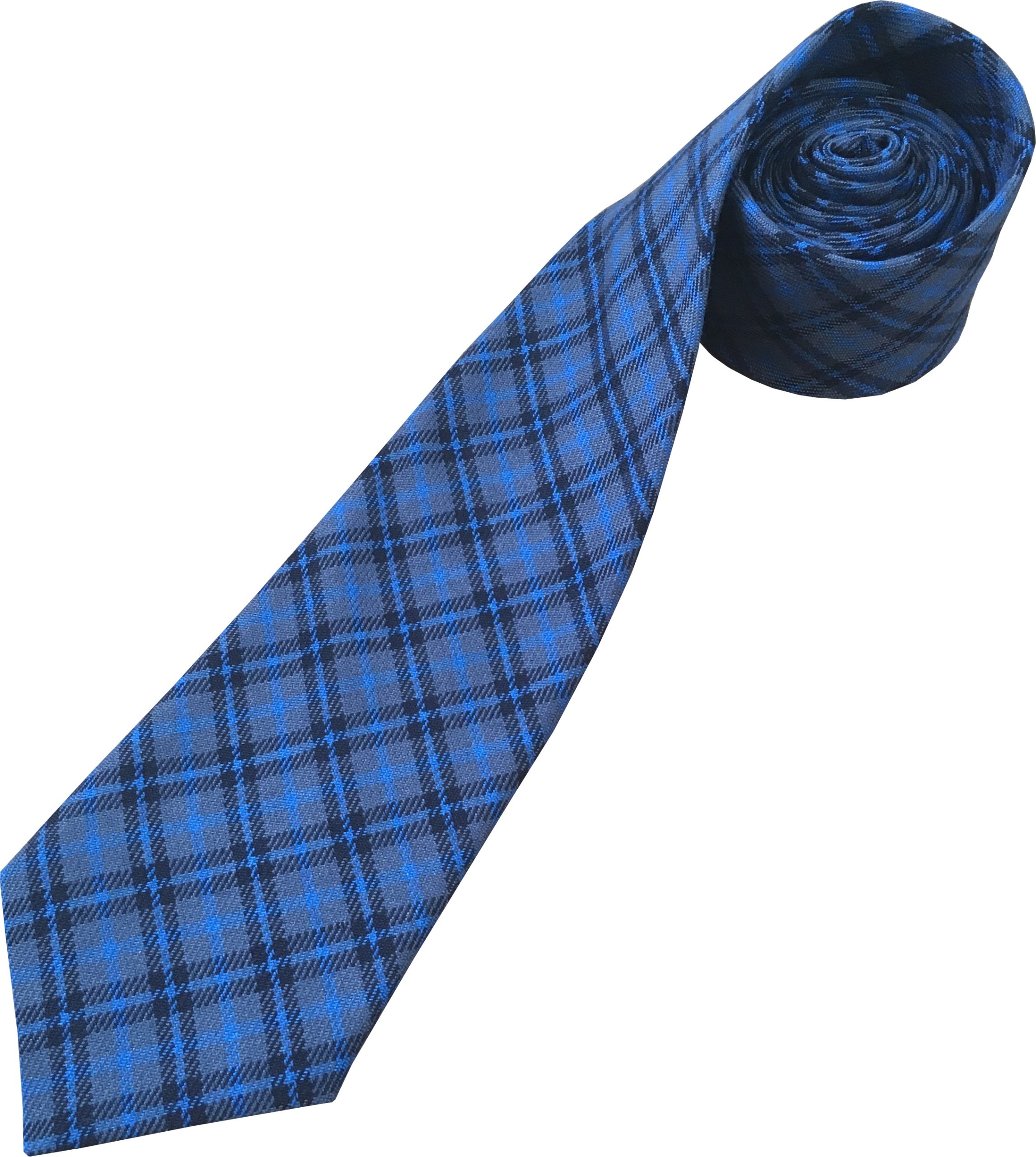 Bedford Blue Men’s tie made in the UK from Tartan woven Polyviscose fabric. Direct from UK manufacturer.