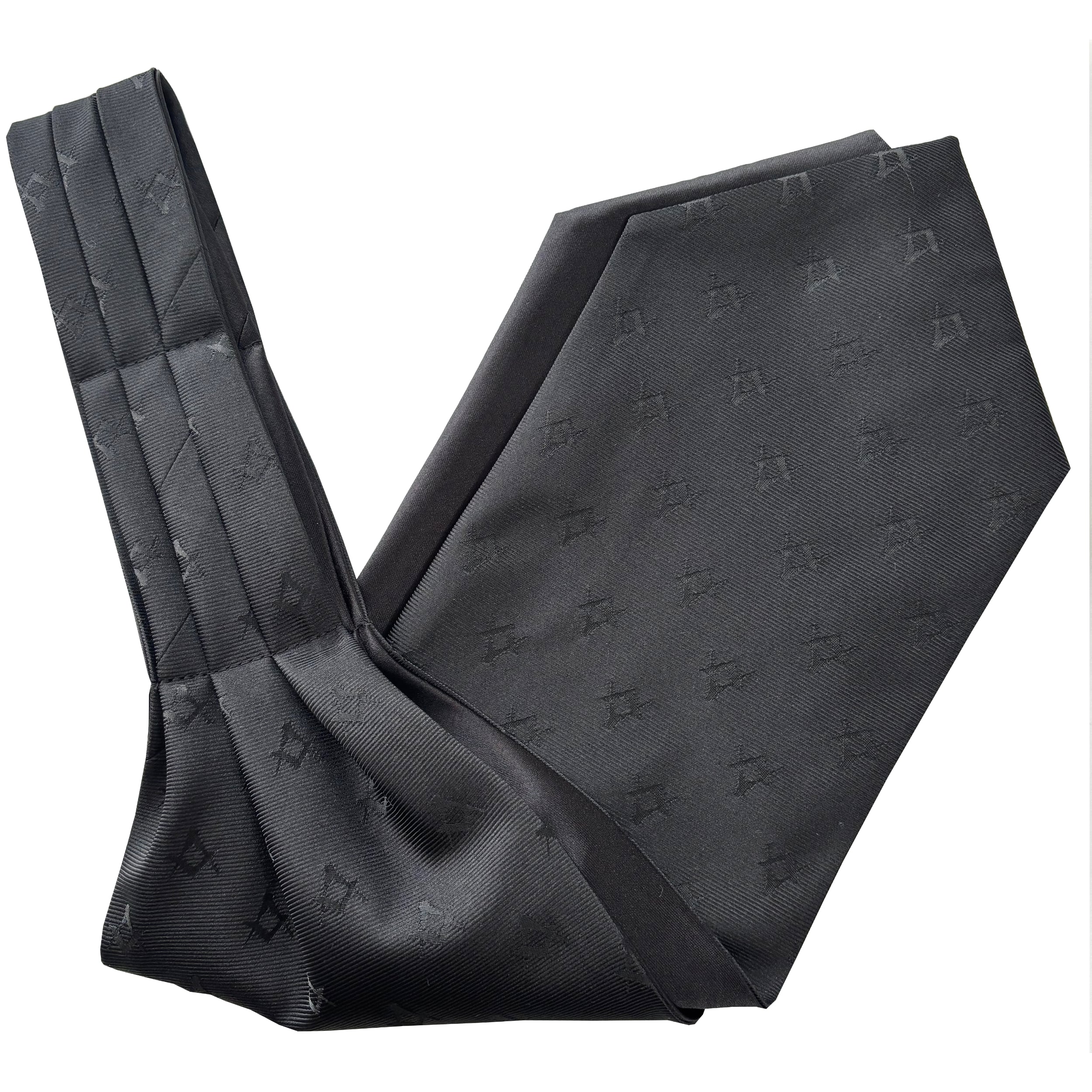Black Masonic Ascot Day Cravat. Made from high quality woven Polyester fabric. Direct from UK manufacturer. The Ascots measure 44 inches long and are 5 inches across at the widest point.