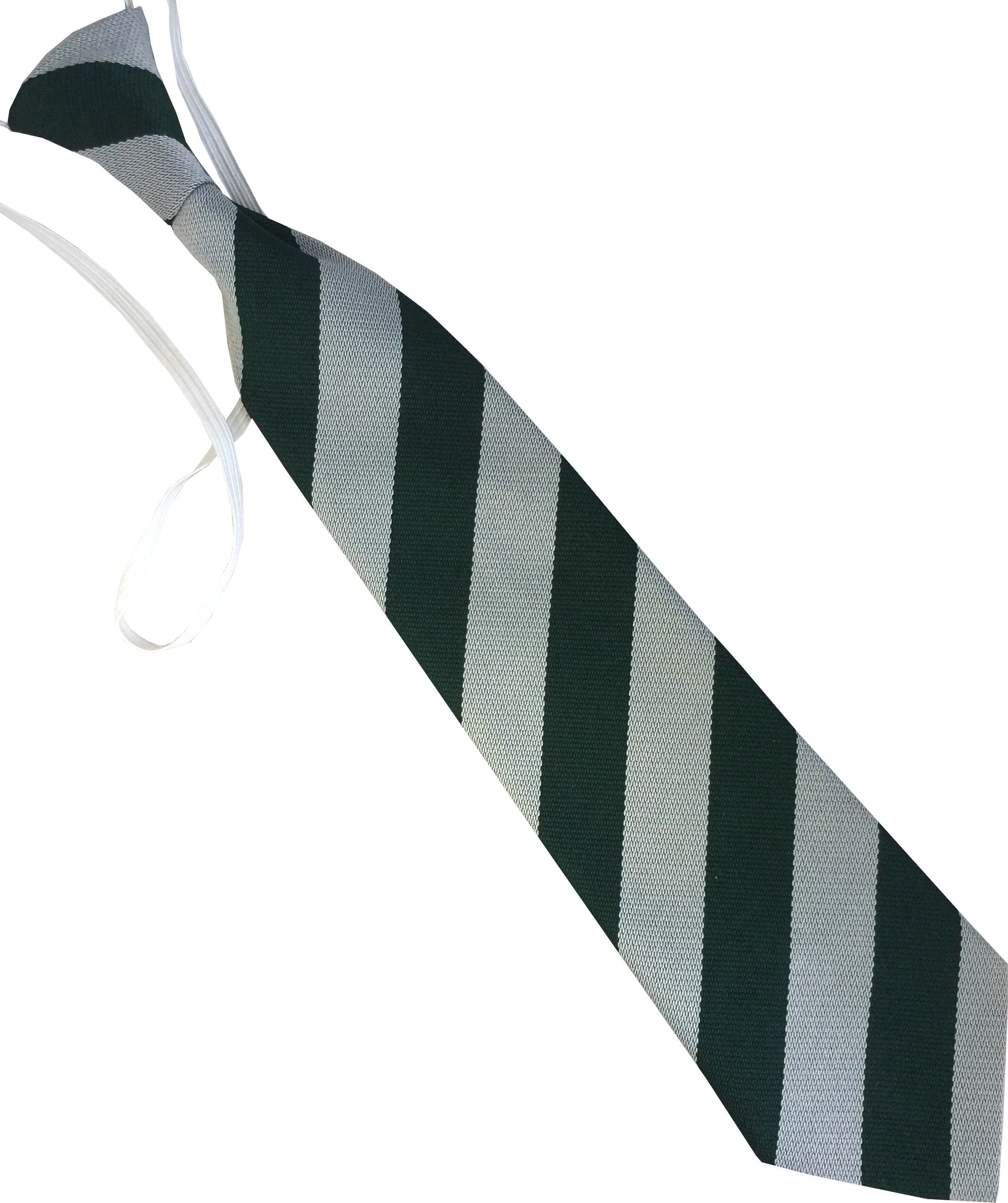Bottle Green and White (Silver) Block Infant School Elastic Tie