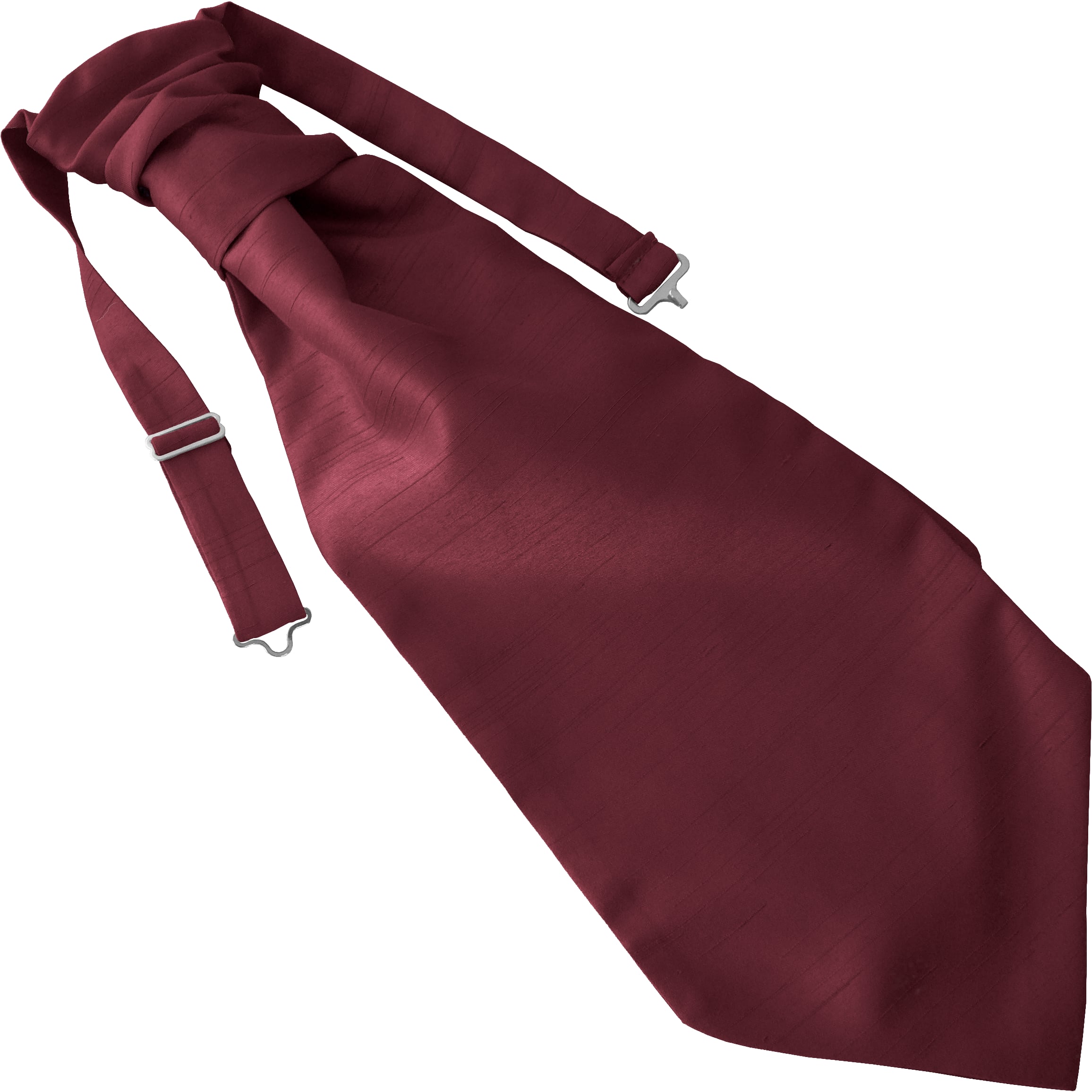 Dark Wine Adult Ruche Cravat made in the UK from High quality cloth produced with a Dupioni faux slub woven Polyester fabric. Direct from UK manufacturer. The Ruches measure 14.5 inches long from the top of the knot to the tip of the cravat and are 5.5 inches across at the widest point. The neckband is suitable for collars up to 19 inches. Please note, Ruche cravats are intentionally short as they are intended to be worn with a waistcoat. The shorter length prevents ruffling and discomfort under the waistcoat.