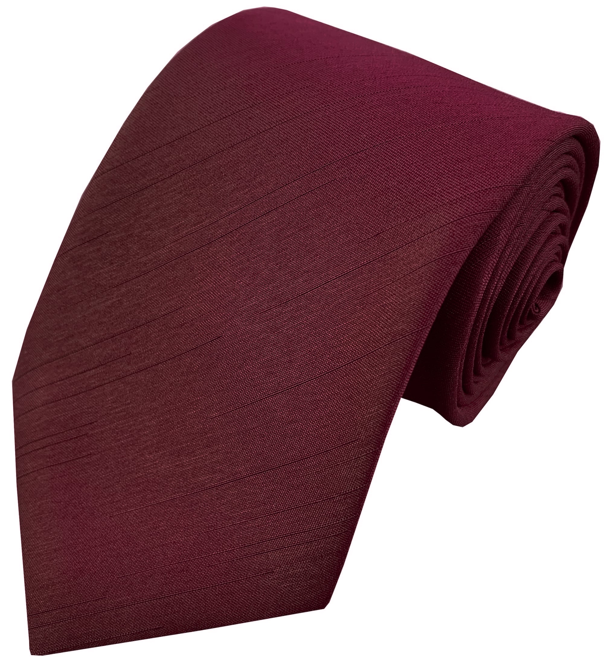 Dark Wine Men’s tie made in the UK from High quality cloth produced with a Dupioni faux slub woven Polyester fabric. Direct from UK manufacturer.