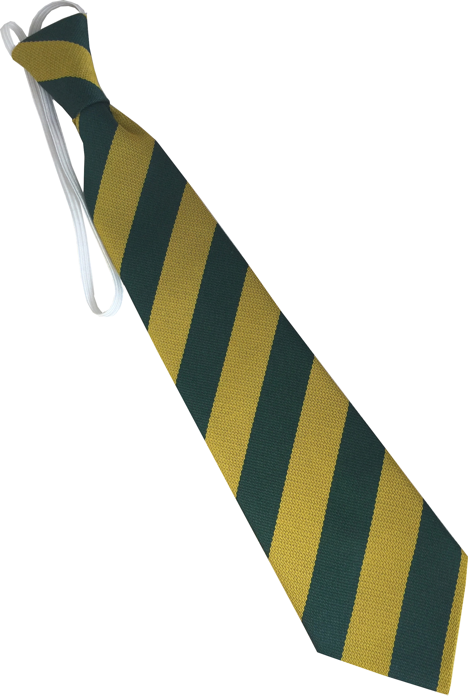 11 inches long, with generous elastic neckband. Just tie a knot in the elastic at the back of the neck to fit, then tuck it under the back of the collar.