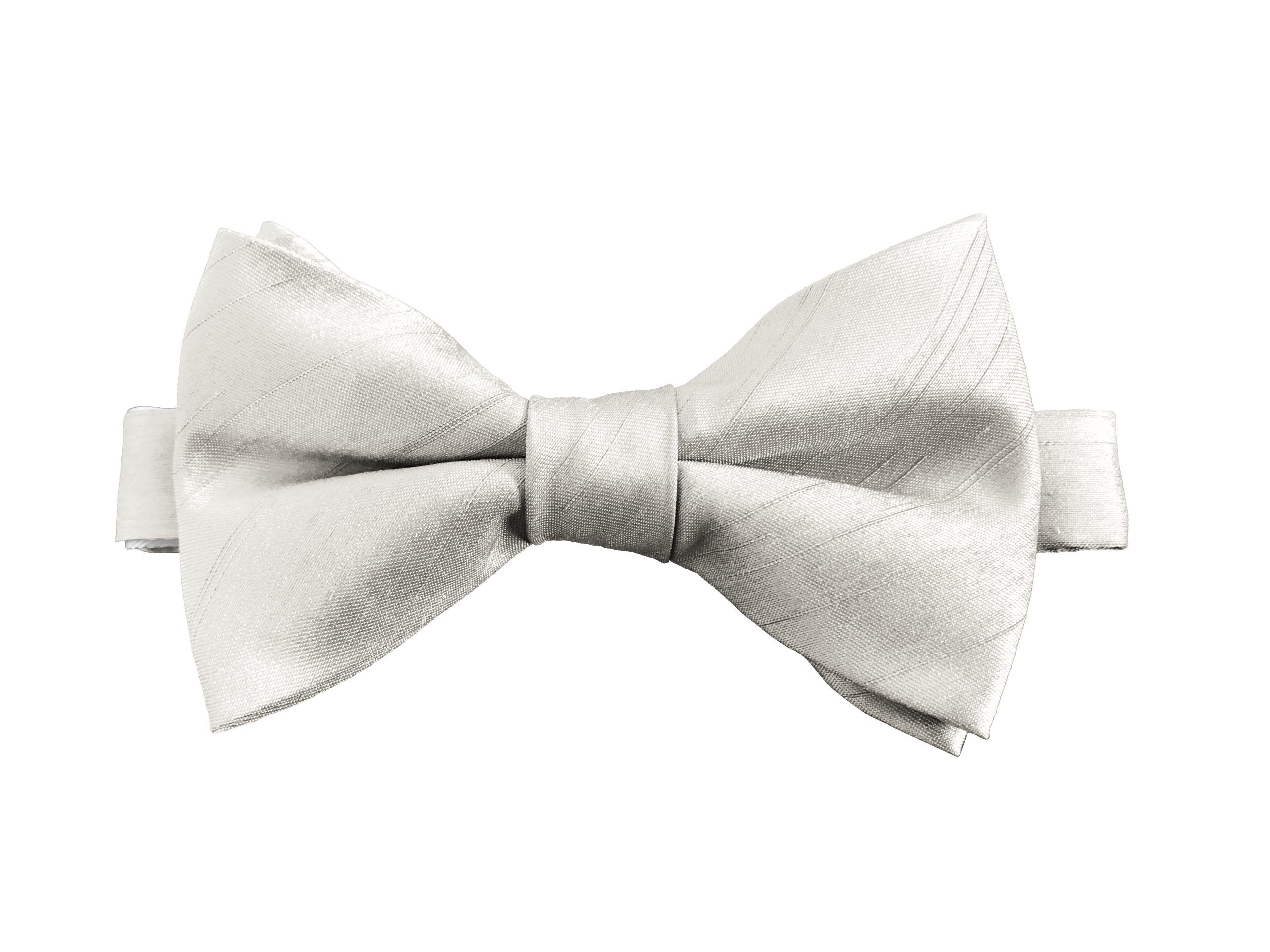 Ivory Ready Tied Bow Tie made in the UK from High quality cloth produced with a Dupioni faux slub woven Polyester fabric. Direct from UK manufacturer. The Bow measures 4.5 inches wide, and the Bow Wings are 2.5 inches tall. The adjustable neckband is suitable for collars up to 19 inches.
