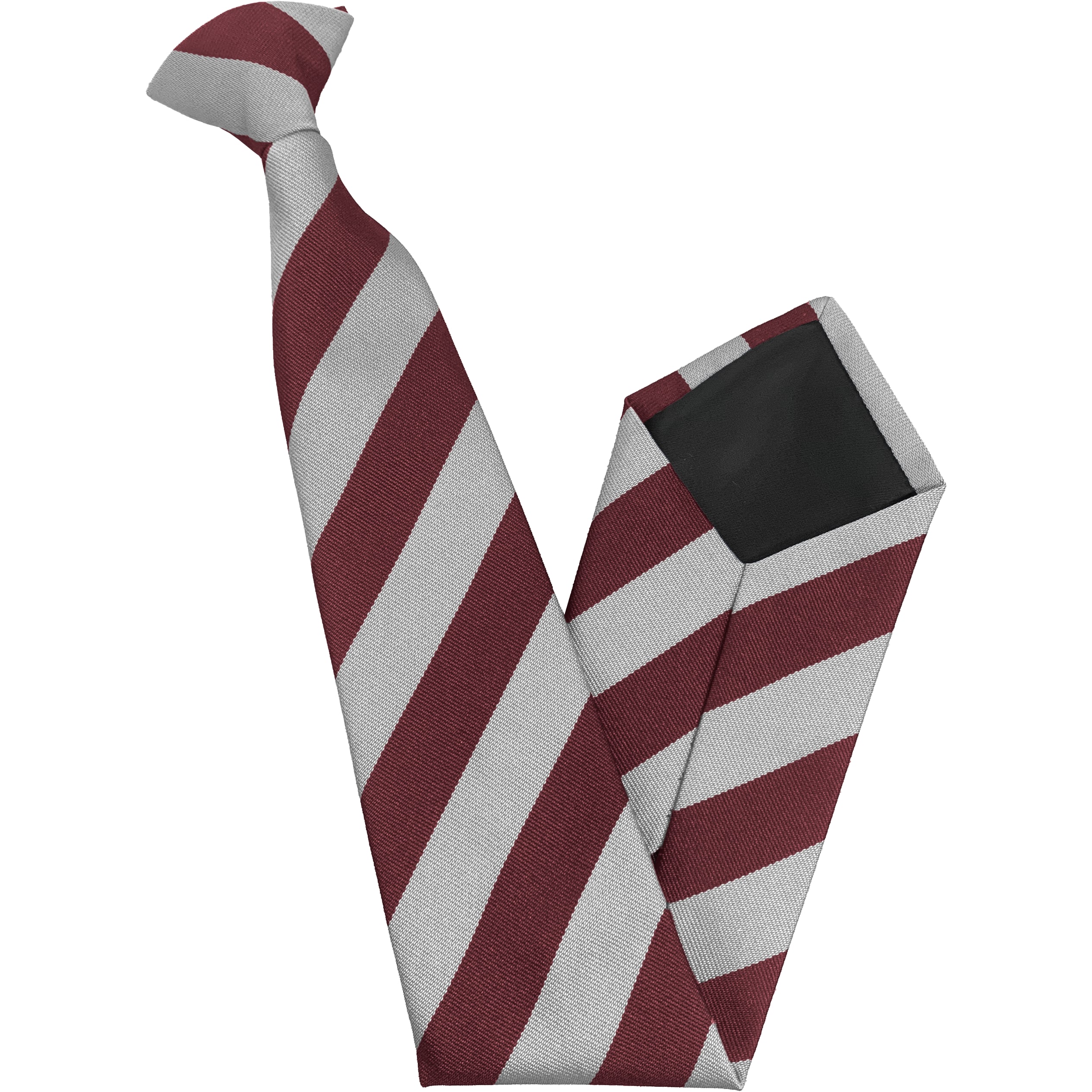 14 inches long (measuring from the top of the knot to the tip of the tie) and 2.5 inches wide. Pre-tied Junior School Clip On Tie. Please measure the intended wearer from the top of the collar to the waistband to check suitability.