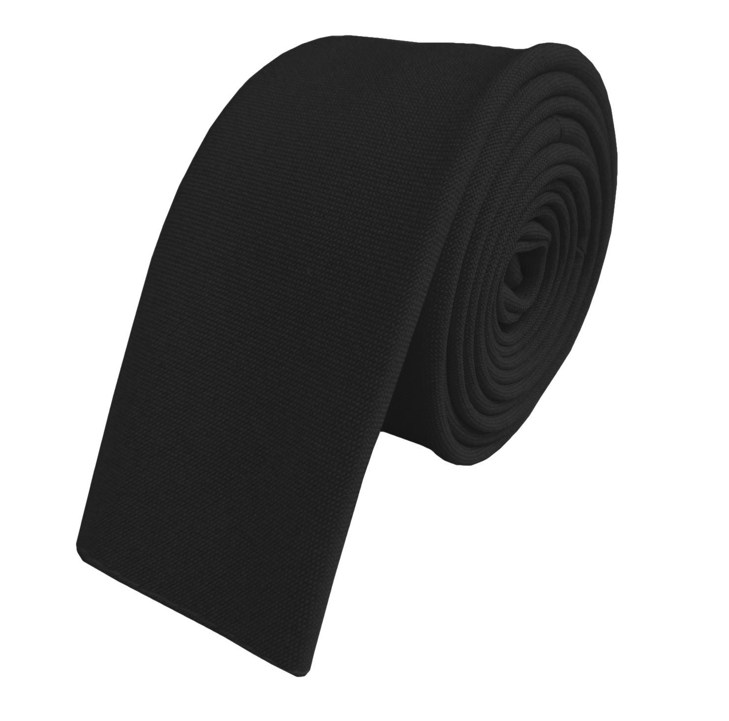 Matt Black Skinny Mens Tie with Square end Tips. Made from high quality durable Matt Polyester fabric. Direct from UK manufacturer. The Tie measures 57 inches long (untied) and is just 2 inches wide.