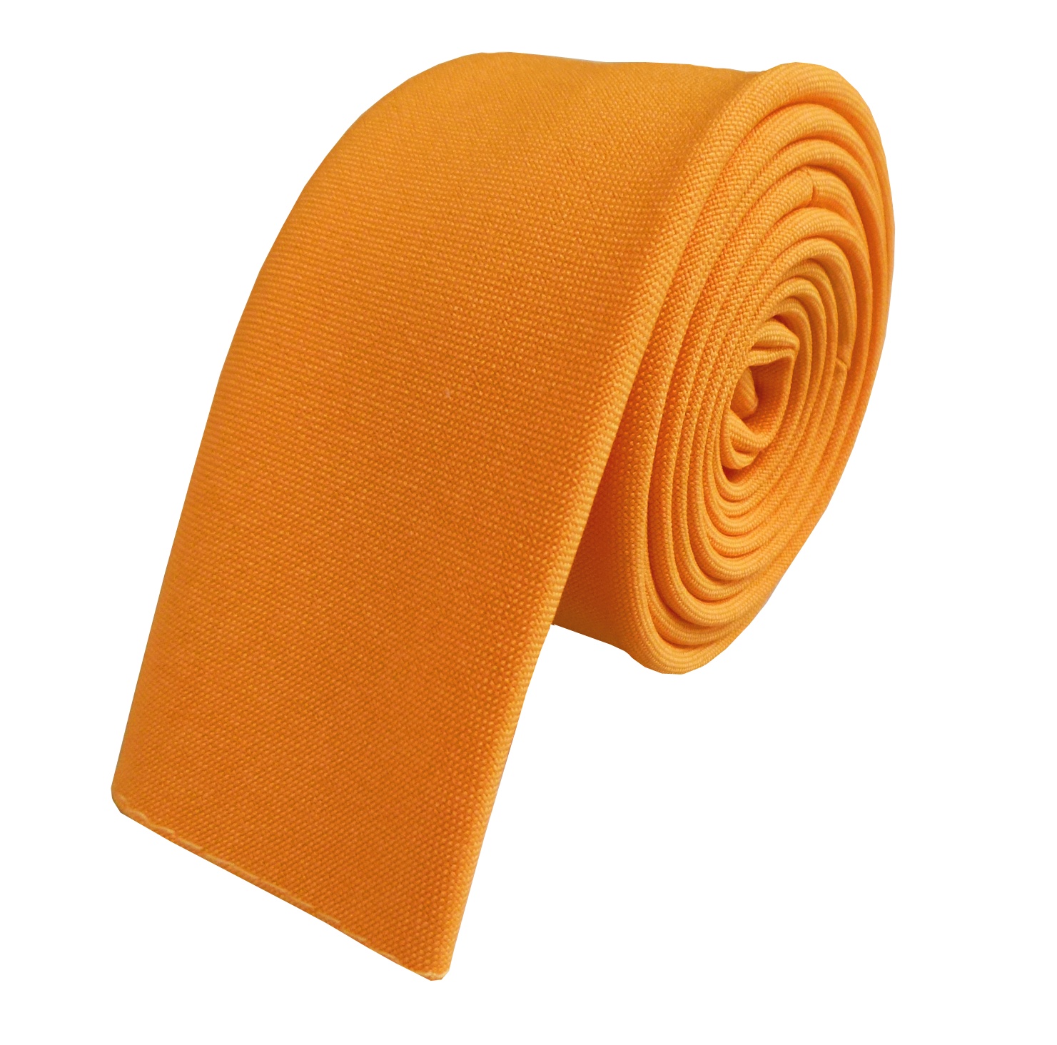 Matt Orange Skinny Mens Tie with Square end Tips. Made from high quality durable Matt Polyester fabric. Direct from UK manufacturer. The Tie measures 57 inches long (untied) and is just 2 inches wide.