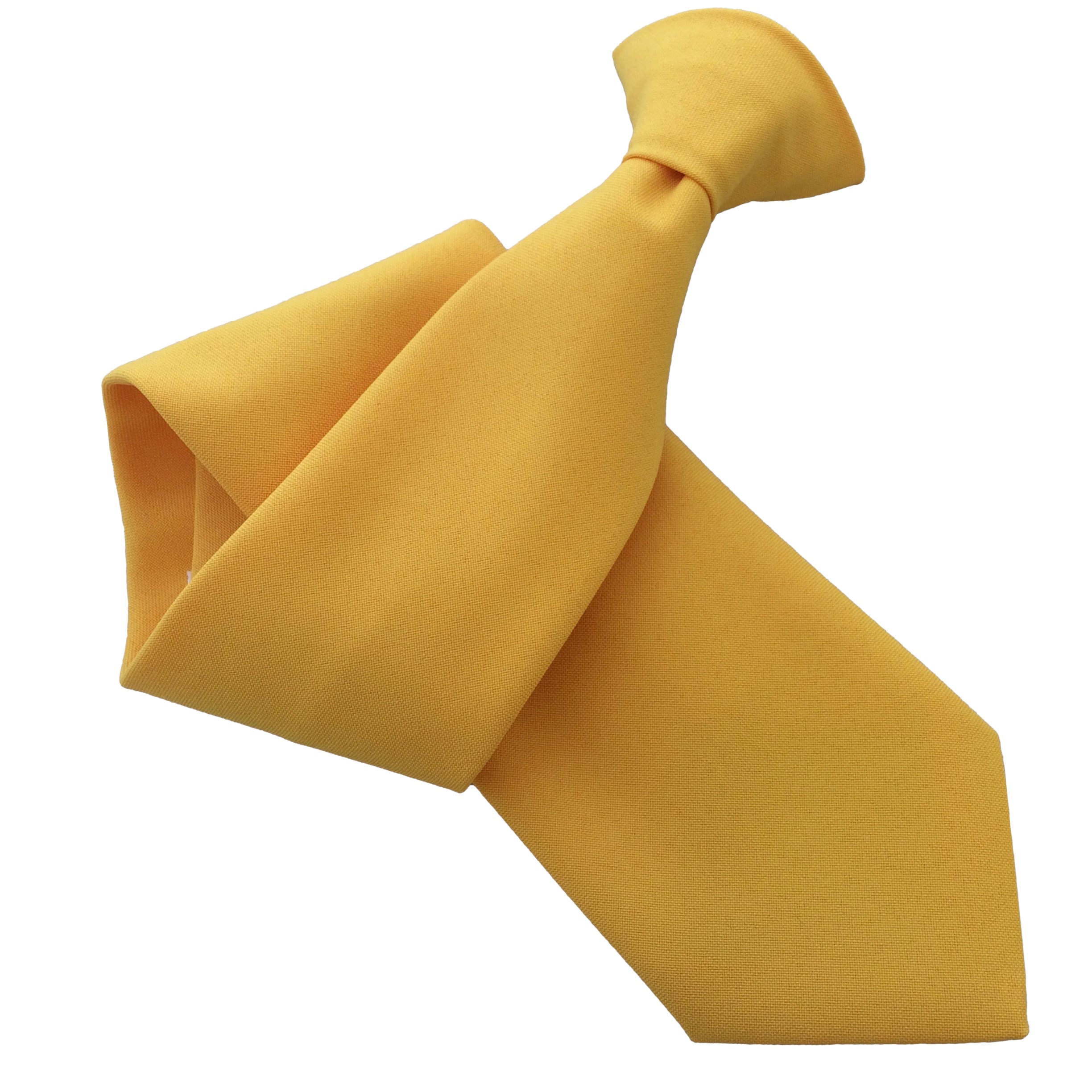 Matt Yellow Clip On Tie. Made from high quality durable Matt Polyester fabric. Direct from UK manufacturer. The Clip On measures 20 inches long from the top of the knot to the tip of the tie and is 3.25 inches wide.