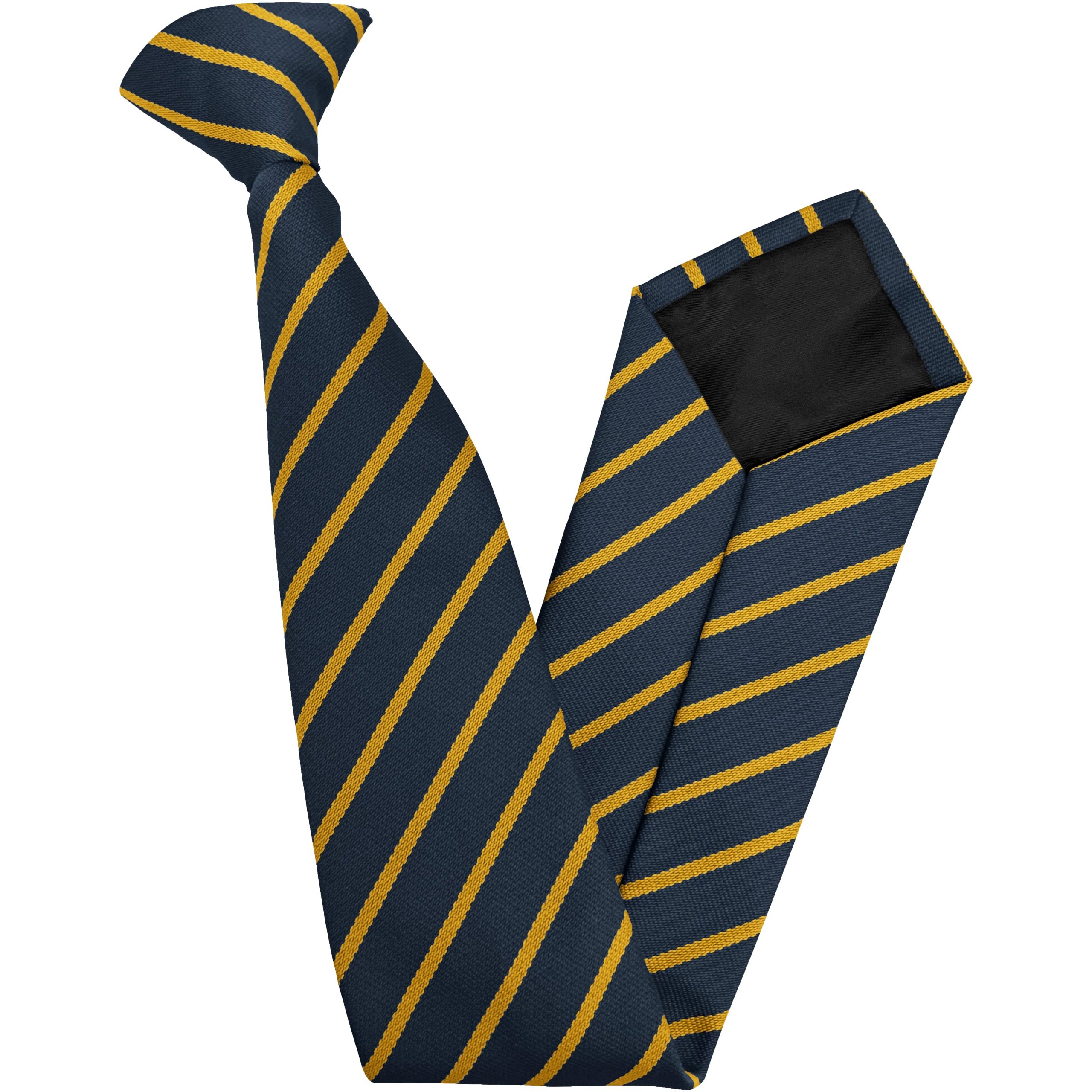 Be the first to review “Navy Blue and Gold Single Narrow Stripe High School Clip On Tie”