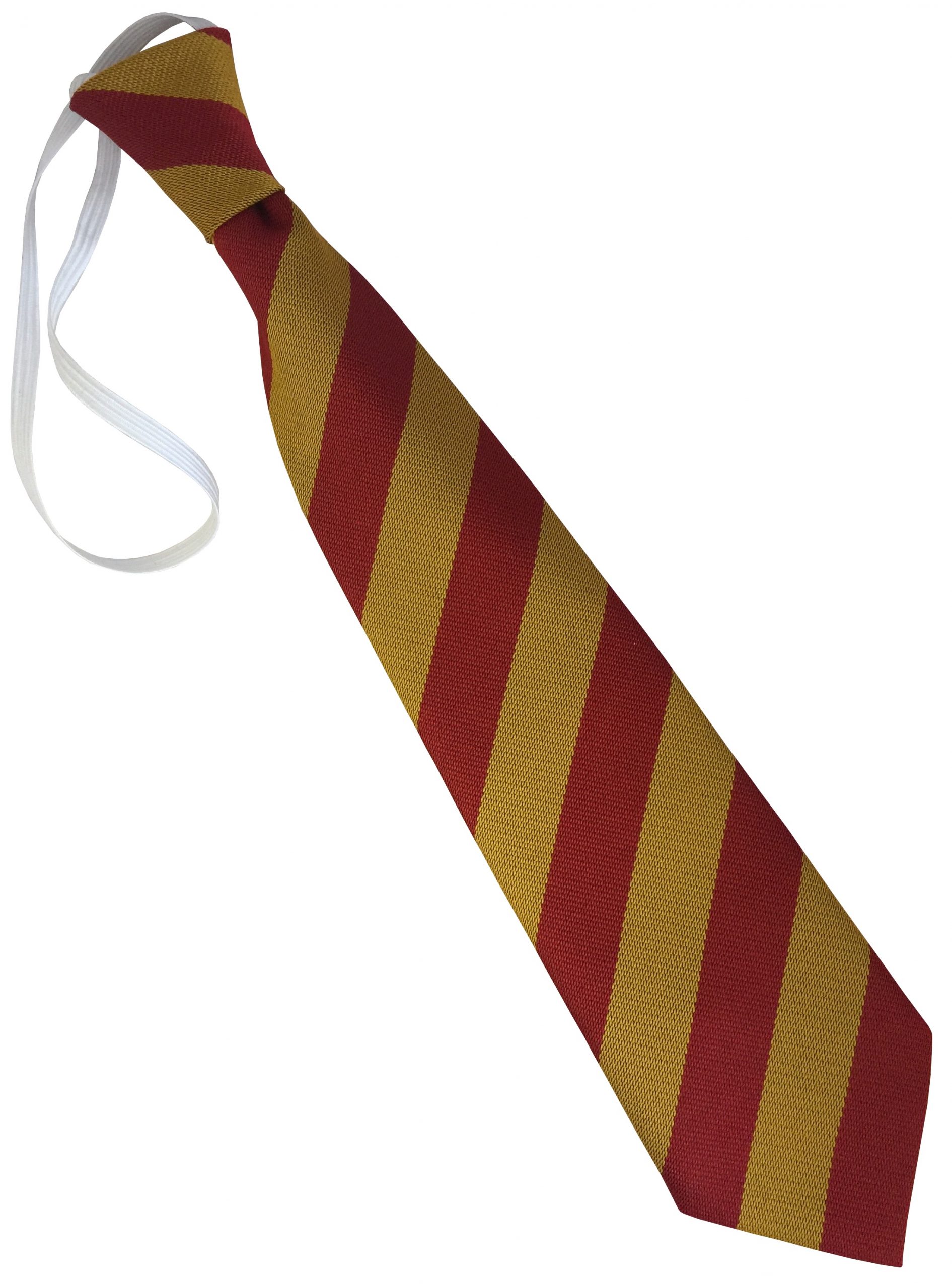 11 inches long, with generous elastic neckband. Just tie a knot in the elastic at the back of the neck to fit, then tuck it under the back of the collar.