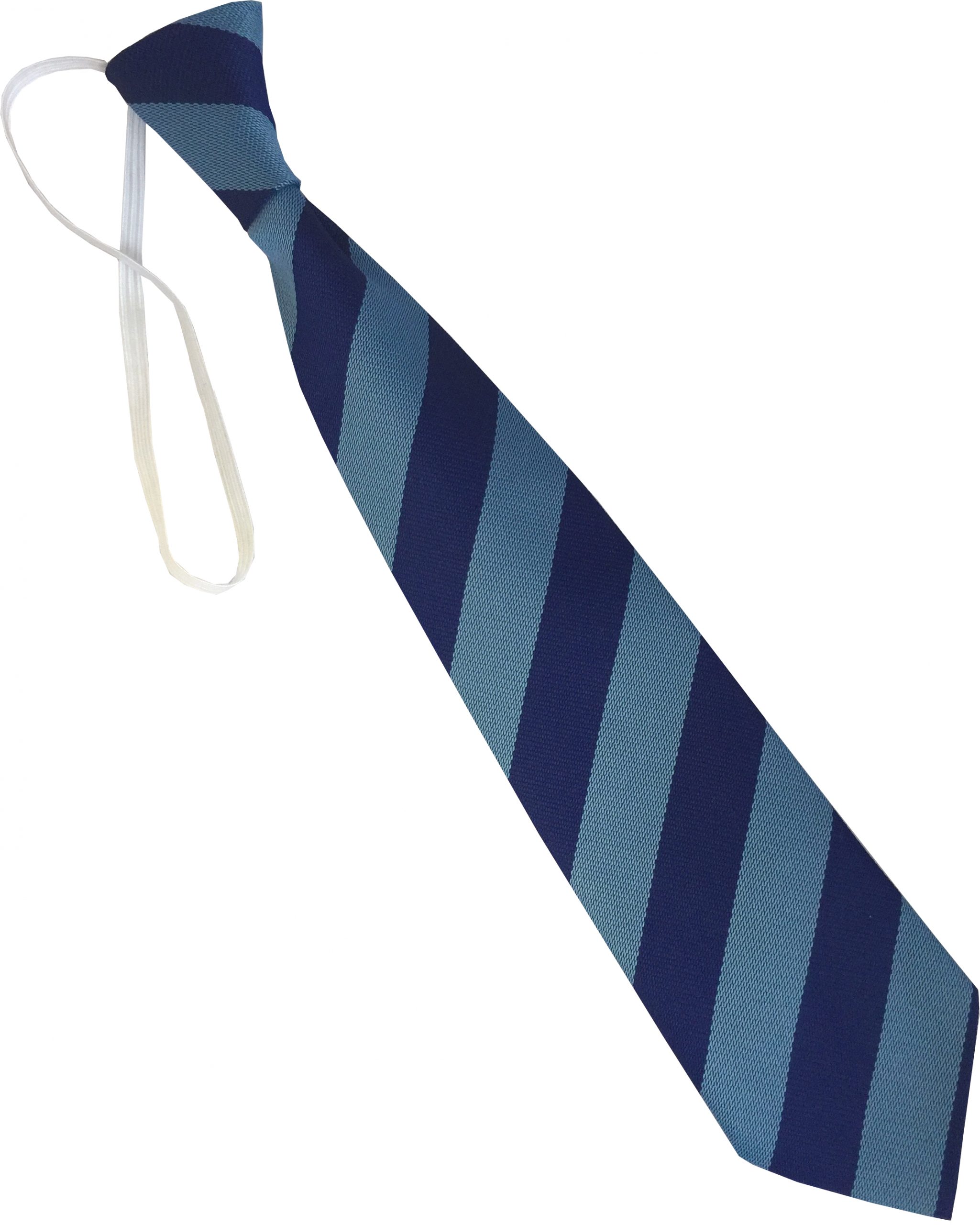11 inches long, with generous elastic neckband. Just tie a knot in the elastic at the back of the neck to fit, then tuck it under the back of the collar.
