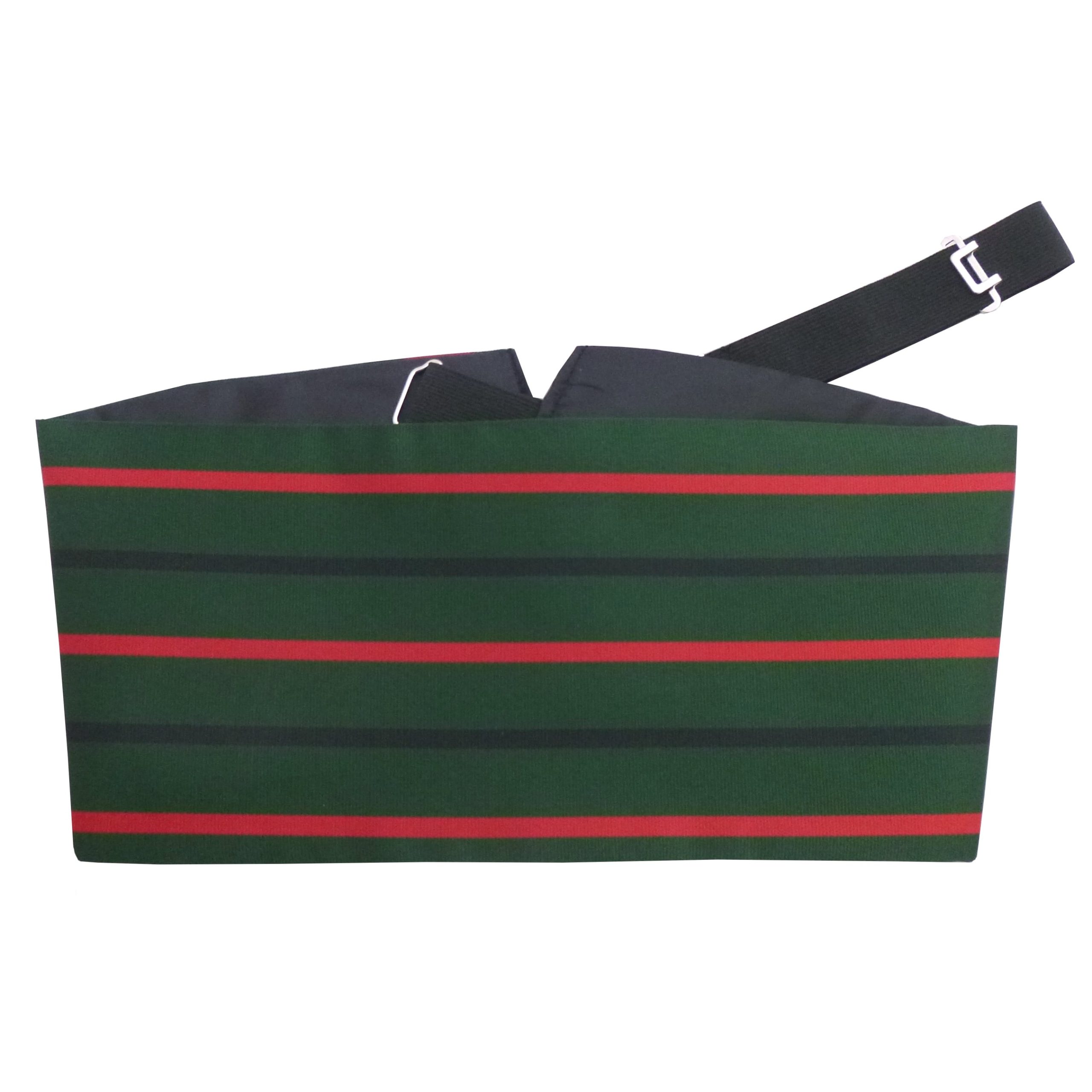 Cummerbund featuring the colours of the Royal Green Jackets. Made from high quality durable polyester fabric. Direct from UK manufacturer. The Cummerbund measures 25 inches wide and 5.5 inches tall. Its elasticated waistband accommodates waists from 32 inches up to 42 inches.