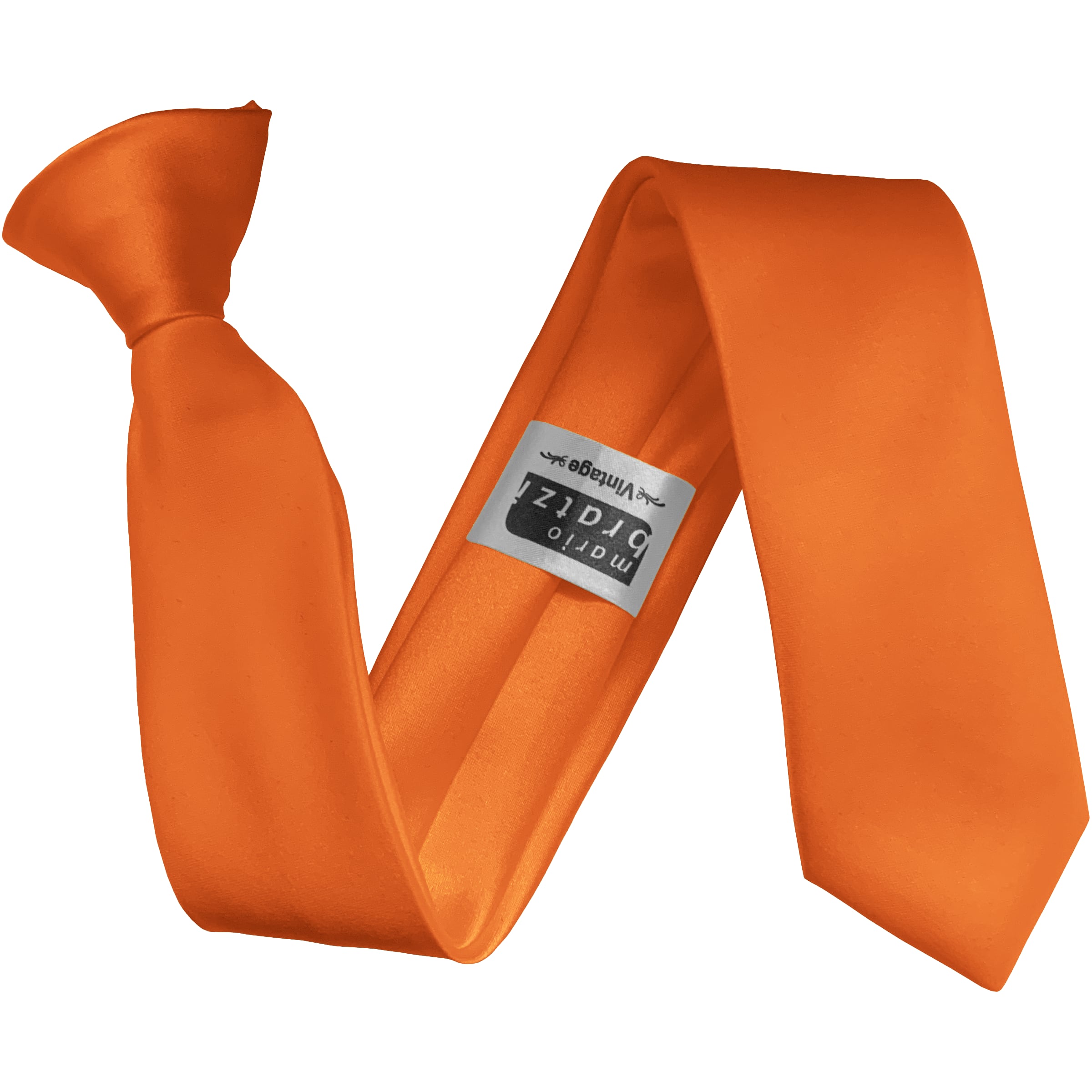 Satin Orange Italian Satin Skinny Clip On Wedding Tie