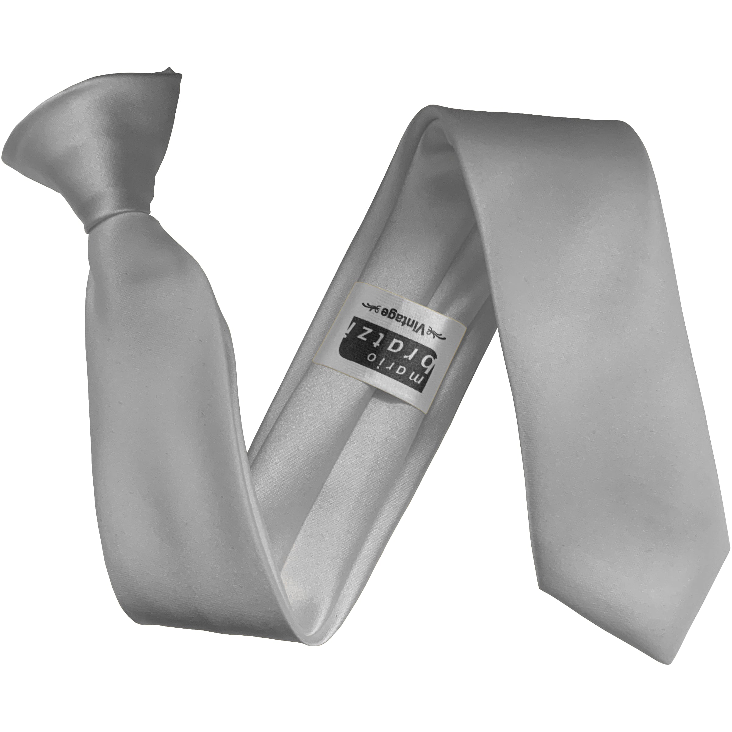 Satin Silver Italian Satin Skinny Clip On Wedding Tie