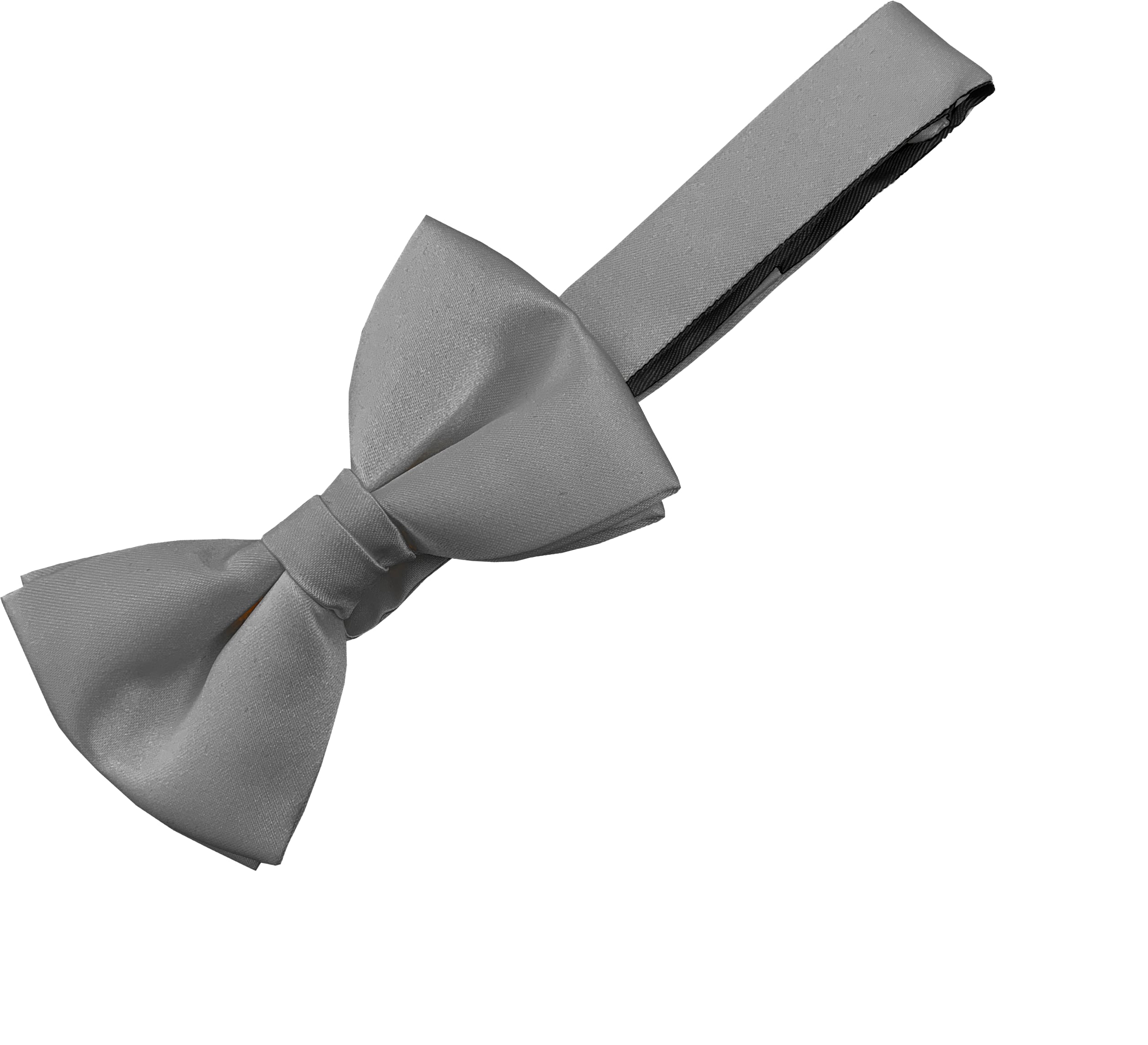Ready Tied Bow Tie made in the UK from imported Italian Satin woven fabrics. Made from high lustre Satin woven Polyester fabric. Direct from UK manufacturer. The Bow measures 4.5 inches wide, and the Bow Wings are 2.5 inches tall. The adjustable neckband is suitable for collars up to 19 inches.