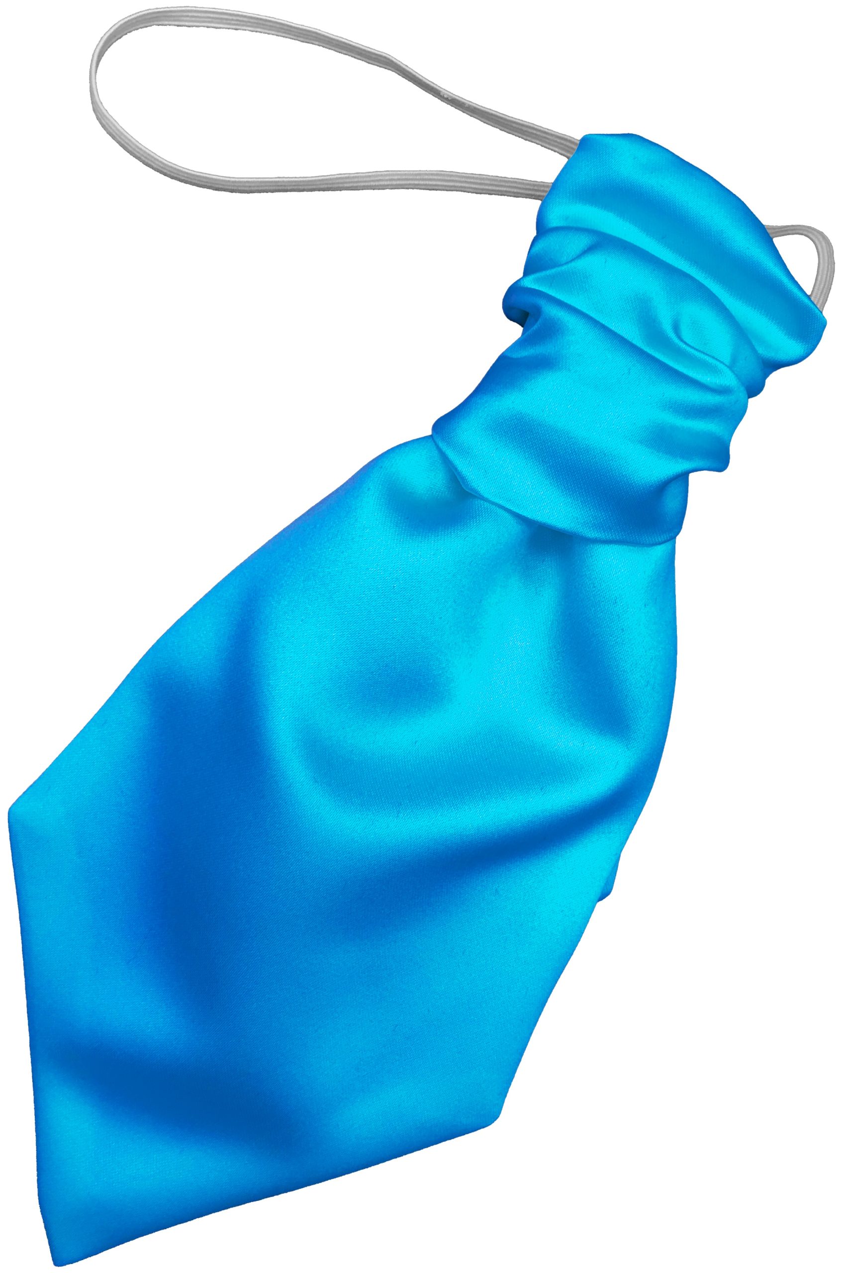 Toddler sized Ruche Cravat made in the UK from imported Italian Satin woven fabrics. Made from high lustre Satin woven Polyester fabric. Direct from UK manufacturer. The Ruches measure 8 inches long from the top of the knot to the tip of the cravat and are 4 inches across at the widest point. The ruche includes a generous elasticated neckband, simply tie a knot in the elastic and hide it under the collar at the back of the neck. Please note, Ruche cravats are intentionally short as they are intended to be worn with a waistcoat. The shorter length prevents ruffling and discomfort under the waistcoat.
