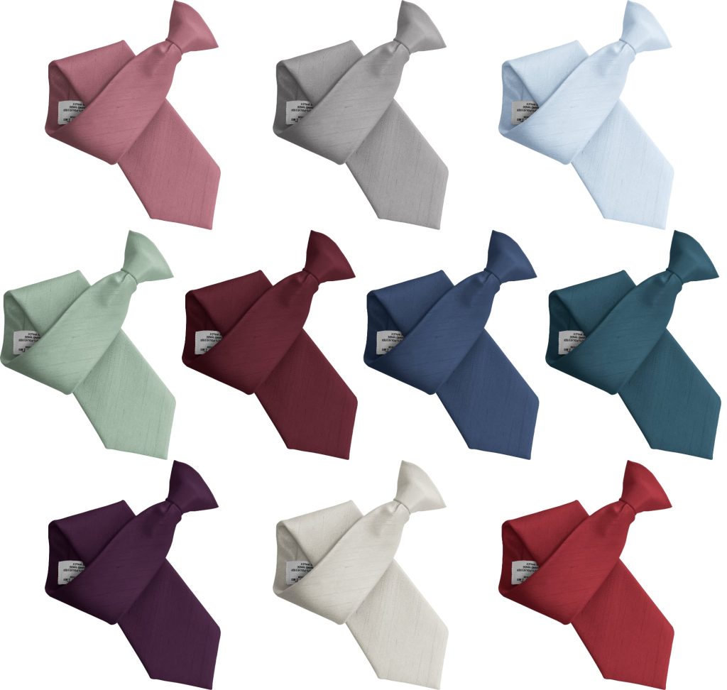 Whether you are looking for ties, cravats bow ties or even cummerbund sets, we have them all in our Satin and Dupion fabrics, and we also stock a range of other ties which are ideal for one the most memorable day of your life! And the collection is growing, so checking back in a few days is likely to have an increased availability of products!
